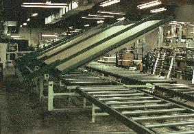 - Three tier platen press: The three tier platen press is similar in function to the 4 tier vacuum press, but is designed to operate in a fully automatic mode with a specialized bead applicator/transfer table unit. Interacting with vacuum lifters and saw tables, the automatic platen press and applicator reduce operator interaction to an initial production run setup.